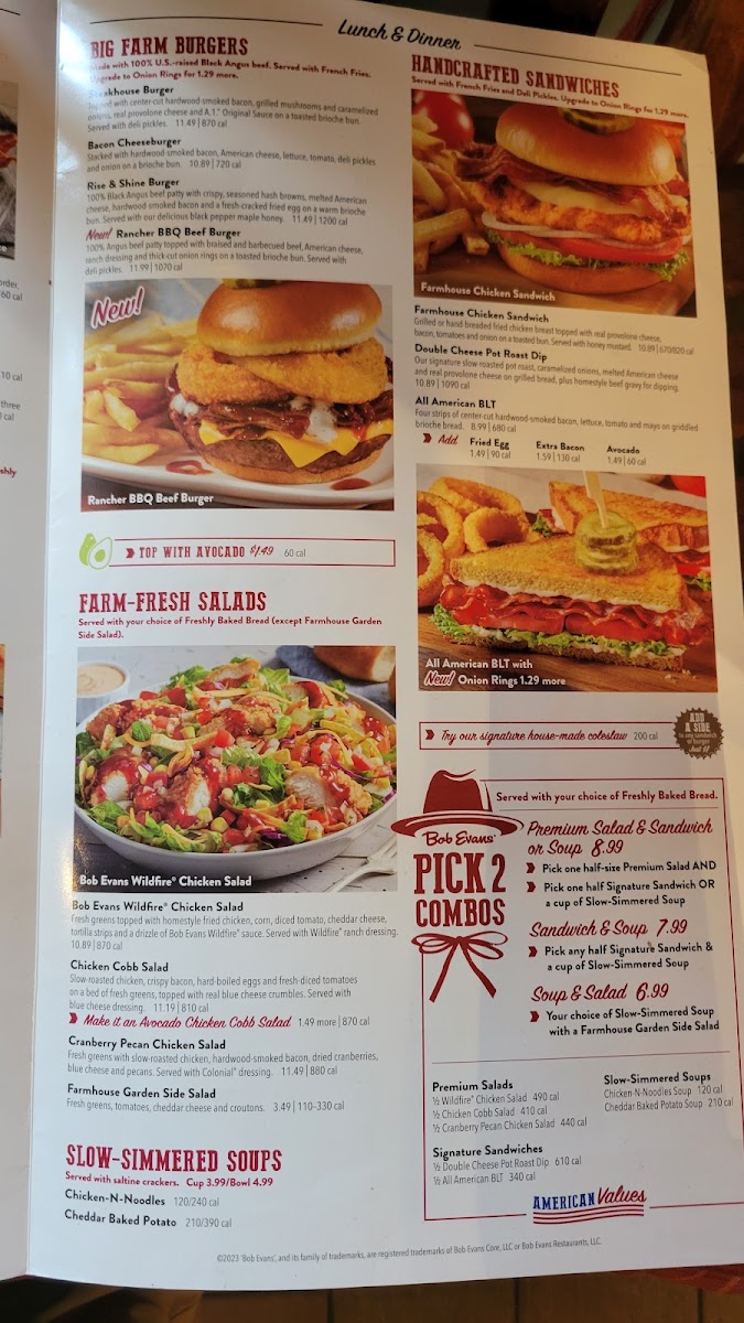 Bob Evans stands out as a beloved family and breakfast restaurant known for hearty, home-style American dishes. Their menu showcases carefully crafted meals that bring comfort and tradition to your table. Start your day with their signature Omelets & Bowls, like the Rio Grande Omelet, bursting with sausage, bell peppers, cheddar, and provolone, all perfectly paired with hash browns or fresh fruit.